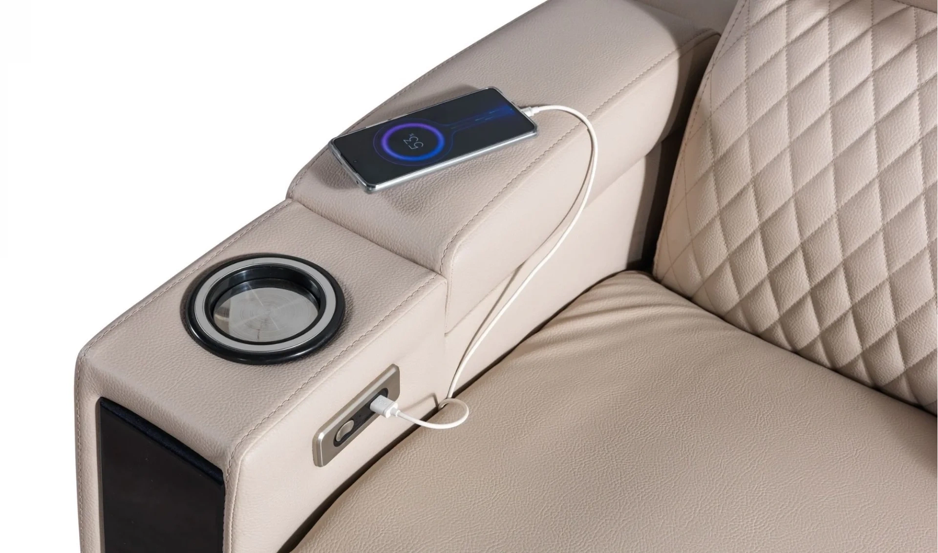 | Koltuk Özelliği | İkili dinlenme koltuğu, her iki oturumda motorlu olarak açılır kapanır. Orta modülde bir adet tepsi ve kol dayama kısmında açılır kapak ve çamtalık mevcuttur. Ayrıca kol kısımlarında 2 adet bardaklık kullanıma sunulmuştur |