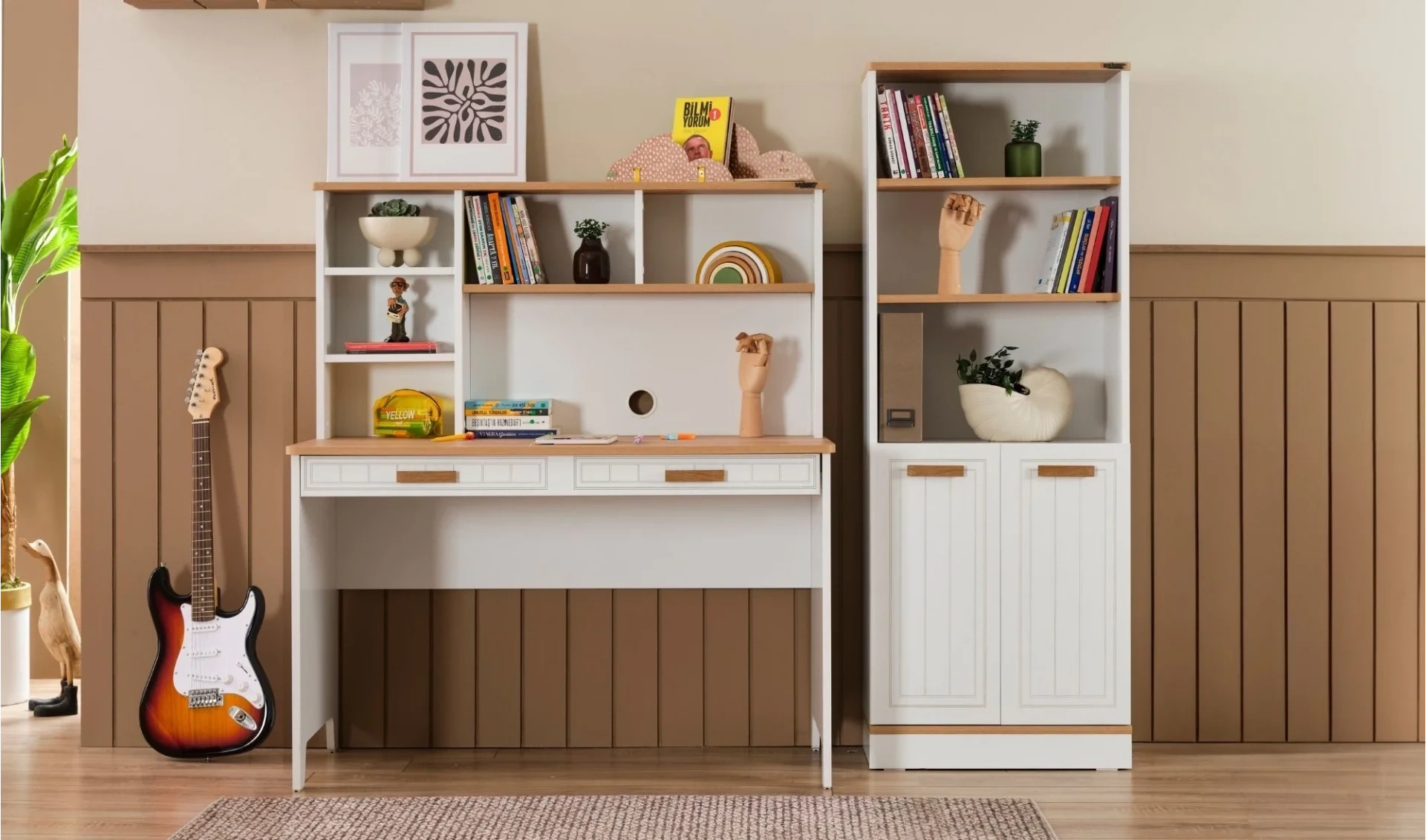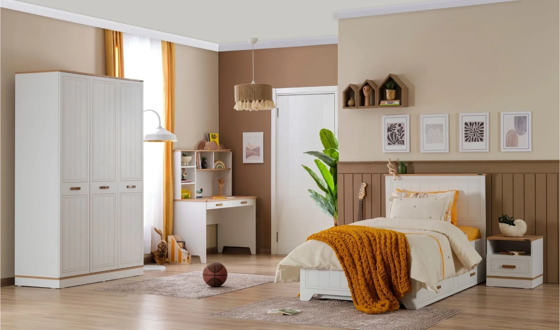 | Takım İçeriği | Gardrop (3 Kapaklı) + Çalışma masası + Bazasız karyola (100x200 cm) |