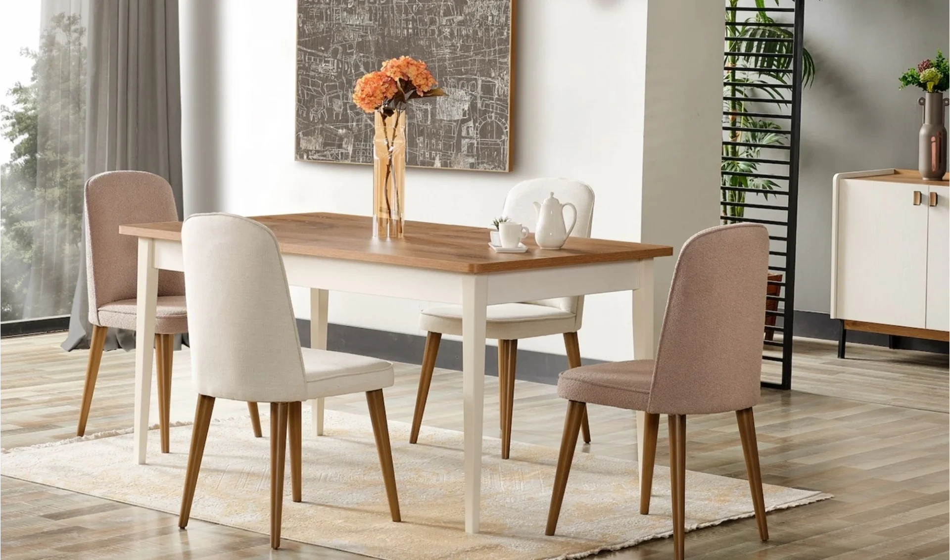 | Takım İçeriği | Yemek masası (açılır) + 6 ad. Sandalye + Konsol ve ayna |