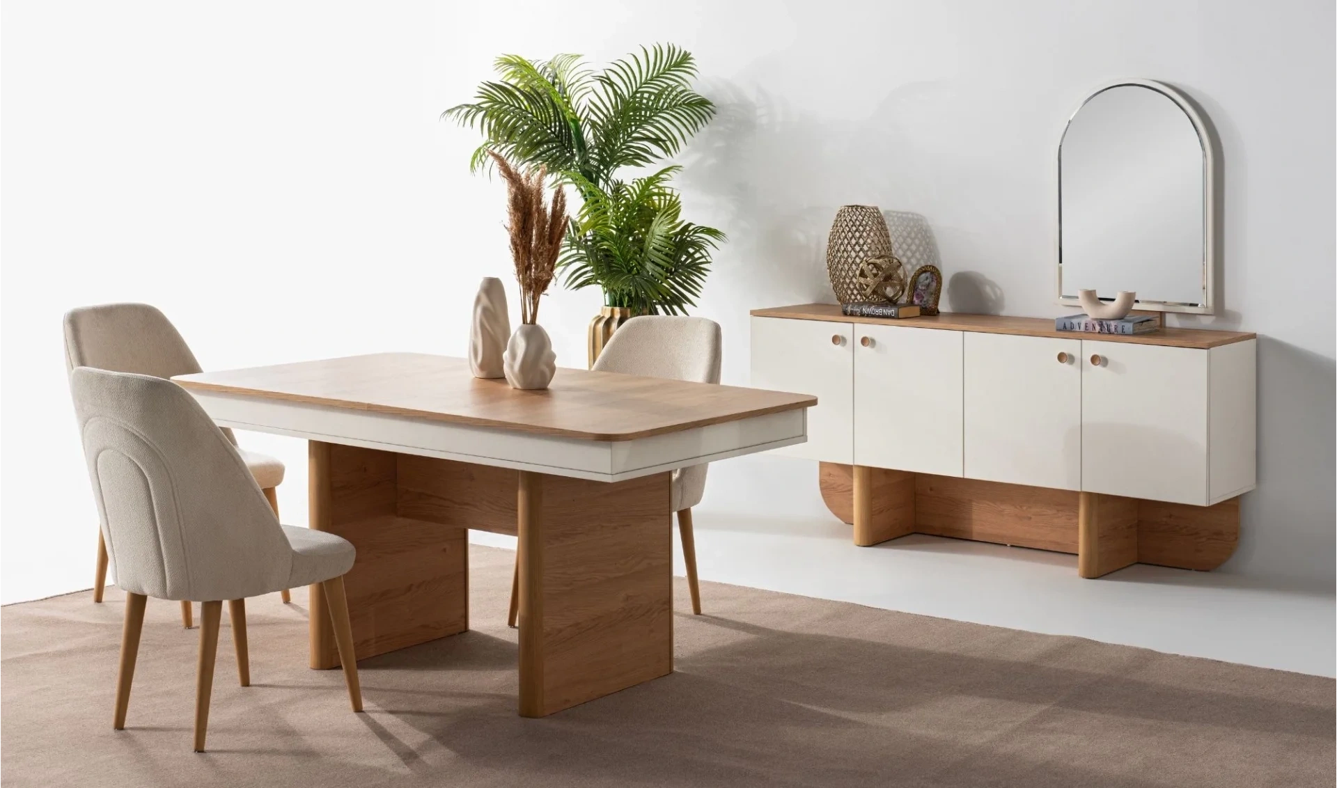 | Takım İçeriği | Yemek masası (açılır) + 6 ad. Sandalye + Konsol ve ayna |