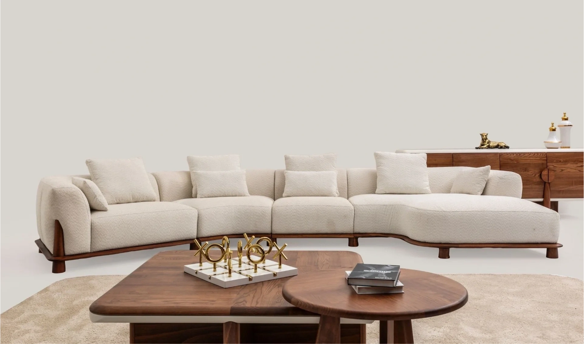| Takım İçeriği | 1 ad. Sağ kollu modül (121cm) + 3 ad. Ara modül (72cm) + 1 ad. Tam köşe modül (190x124) + 1 ad. Sol dinlenme modülü (162x151) |