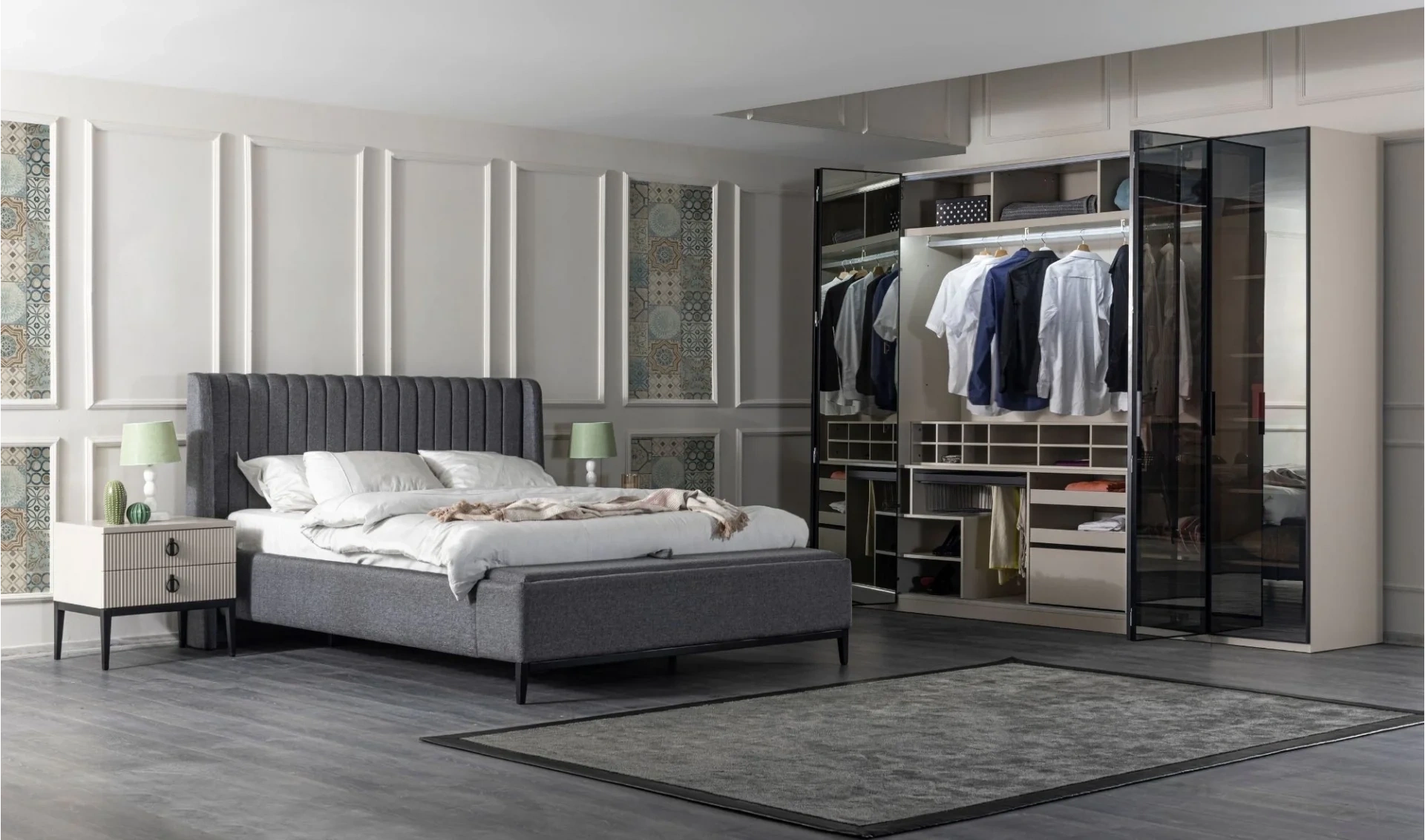| Gardırop İçeriği | Pantolonluk, raf, çekmece, askılık |