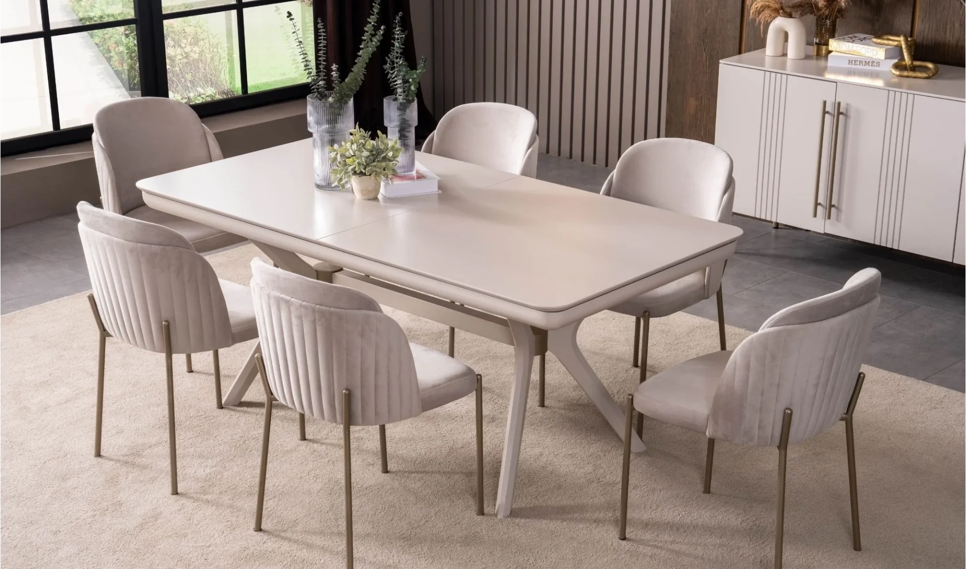 | Takım İçeriği | Yemek masası (açılır) + 6 ad. sandalye + Konsol ve ayna |