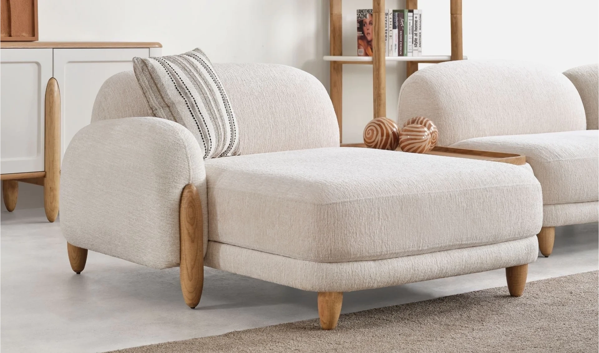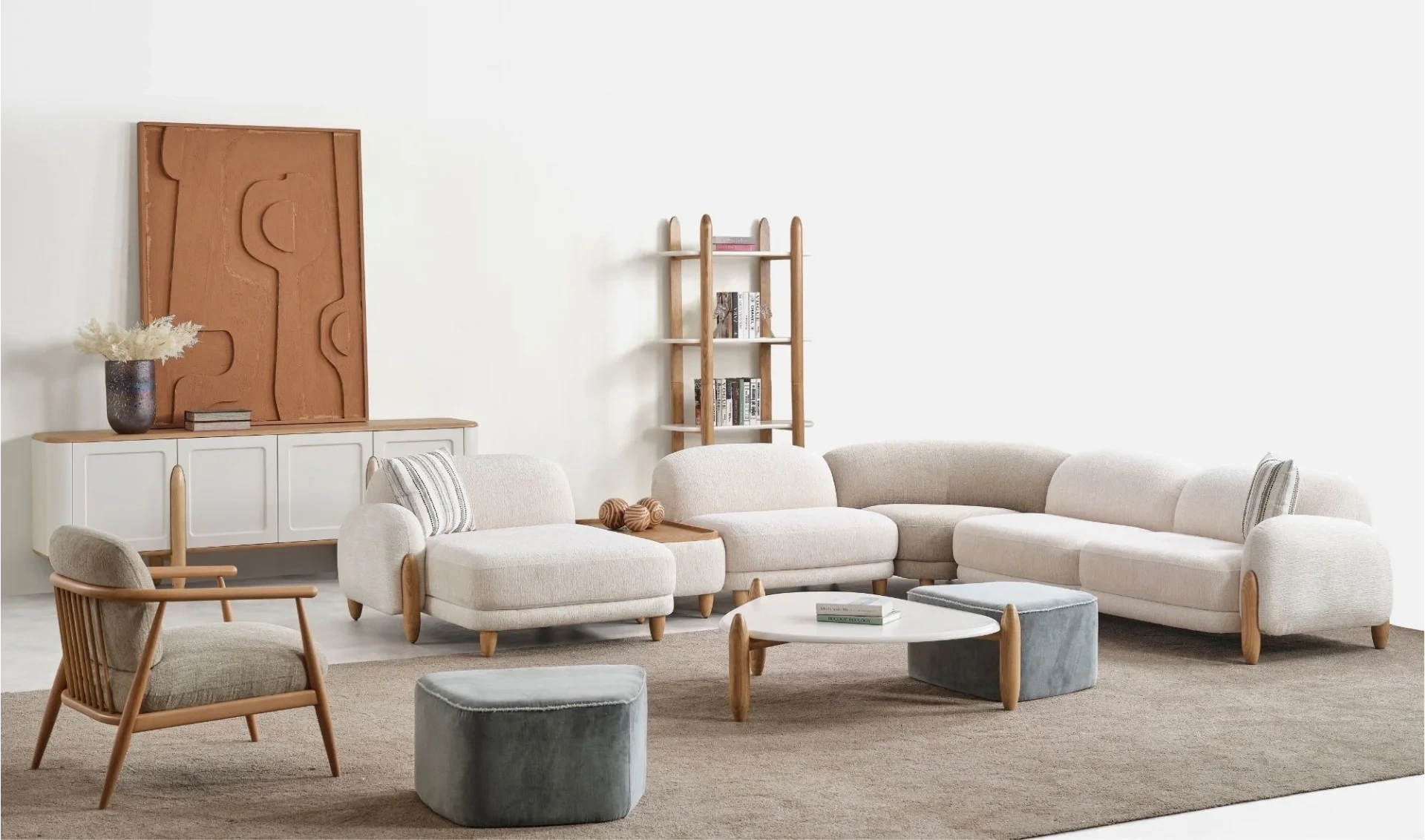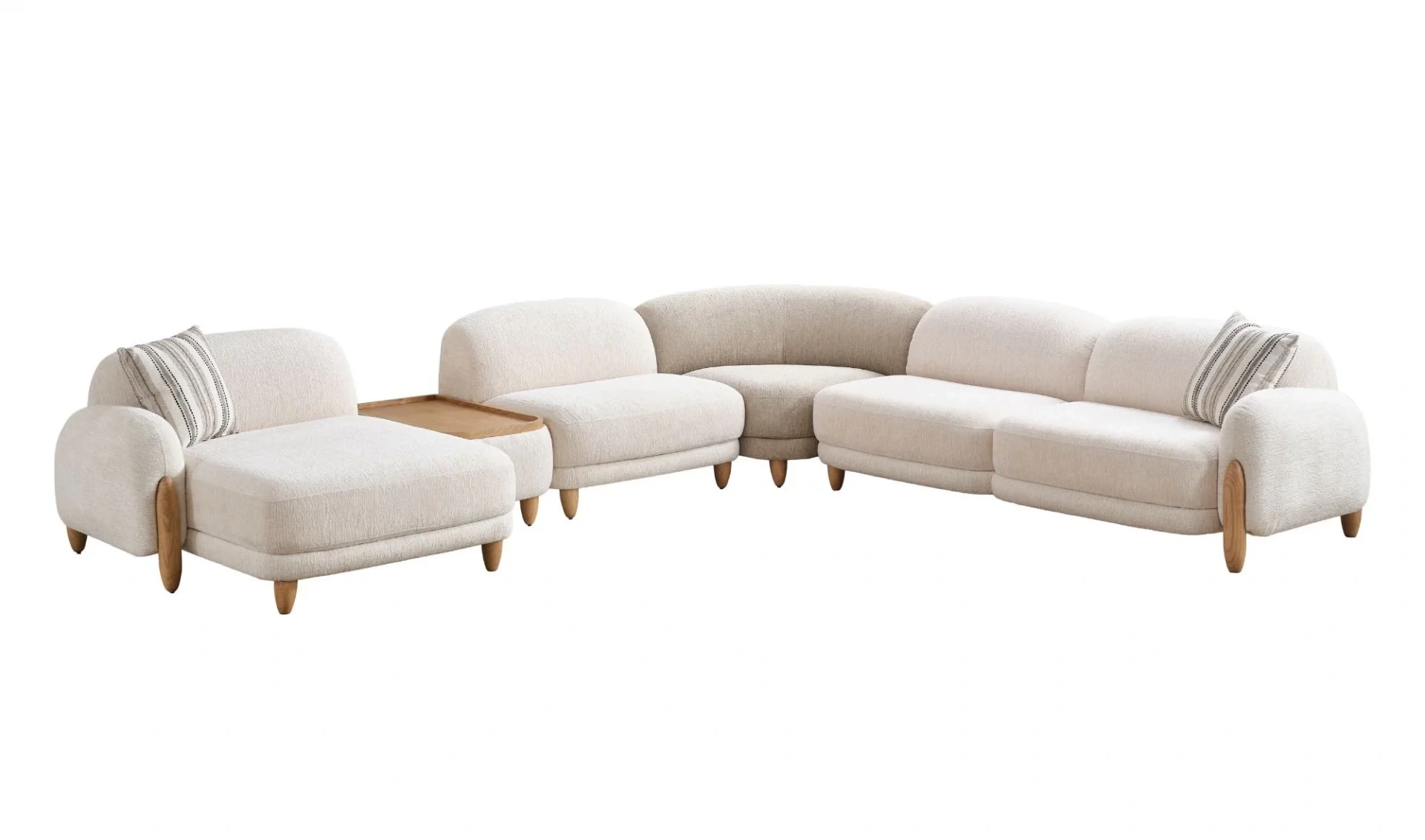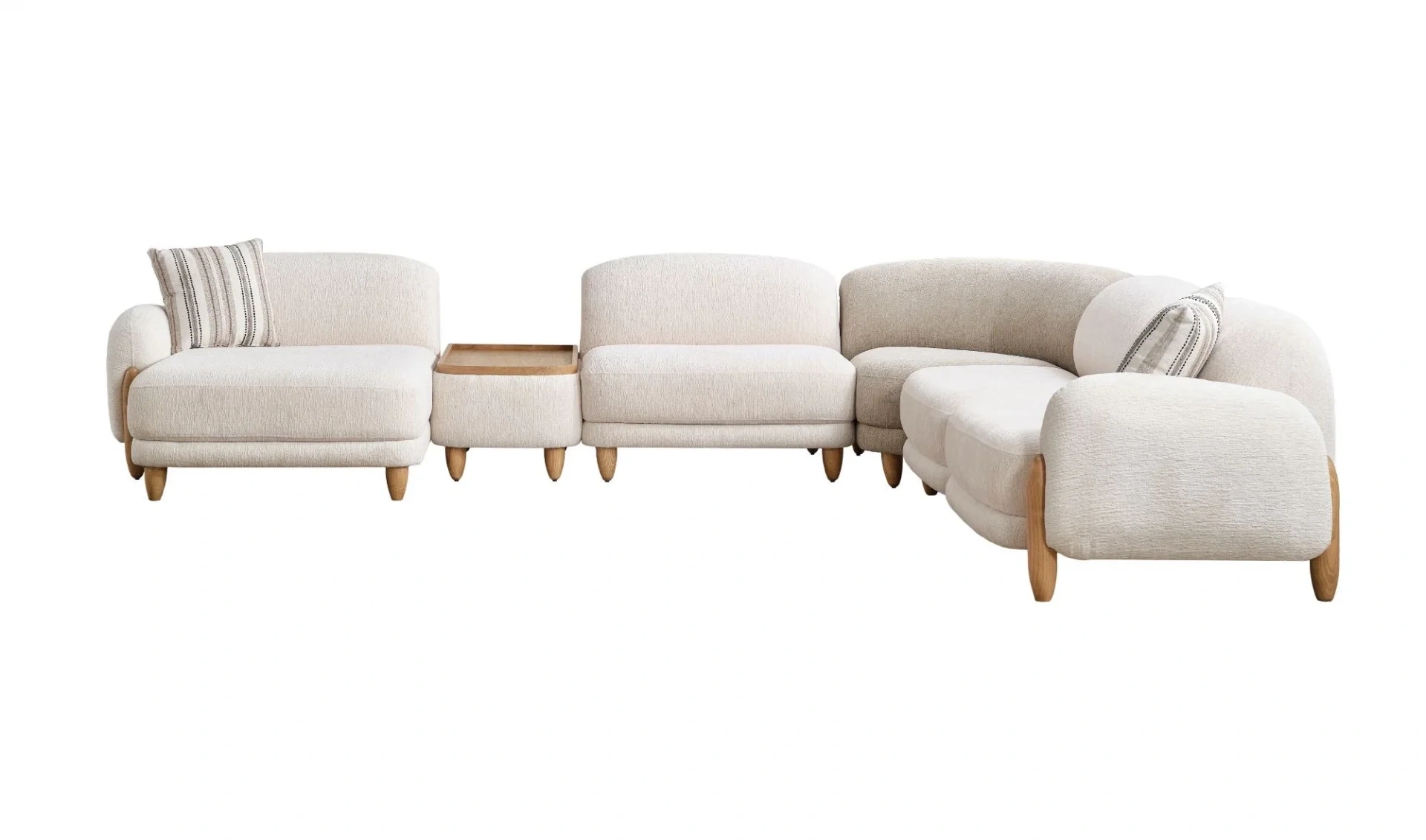 | Takım İçeriği | Relax modül (116x140) + Ahşap ara sehpa (52cm) + Ara Modül (95 cm) + Köşe Modül (104x104) + Tek kollu kanepe (210cm) |