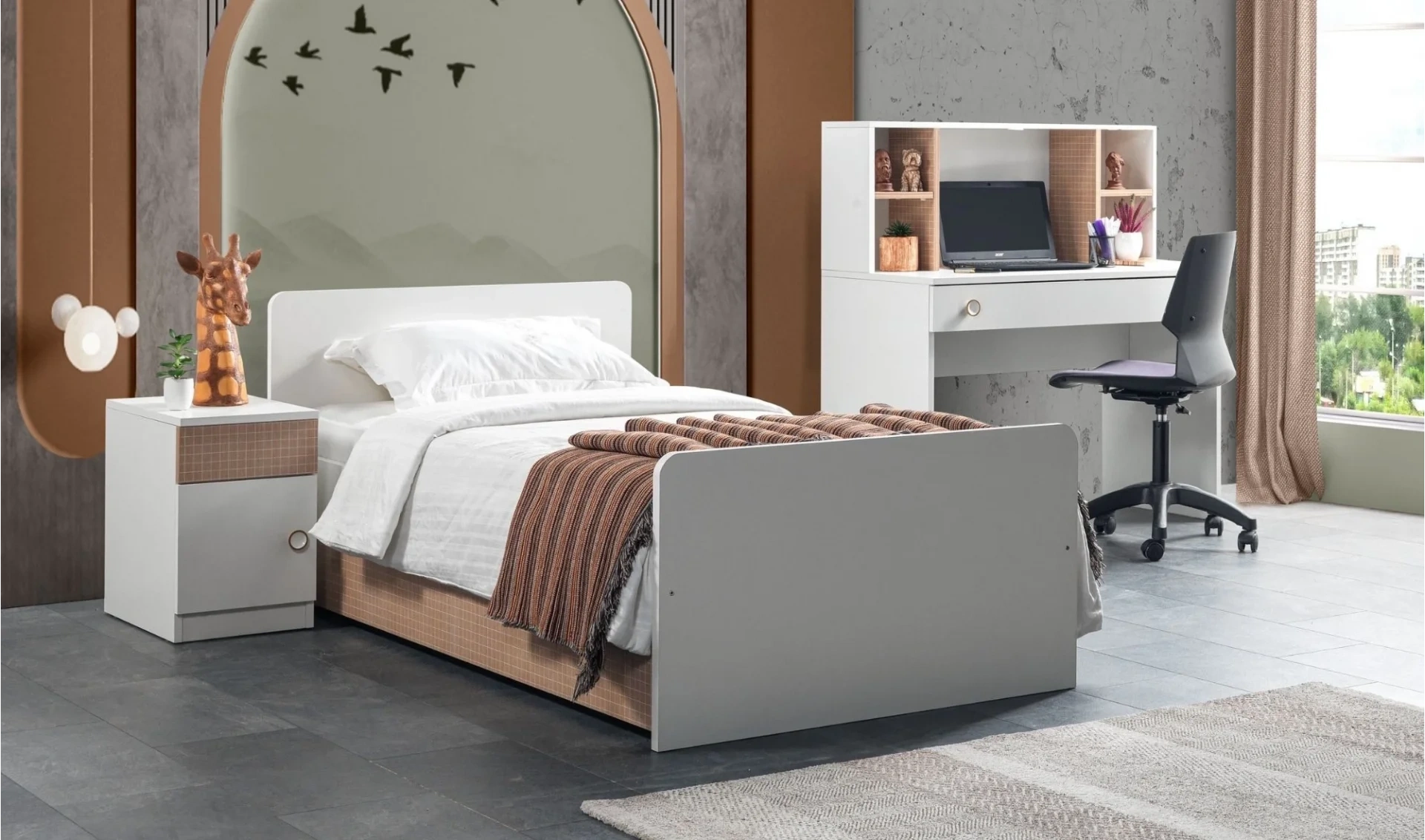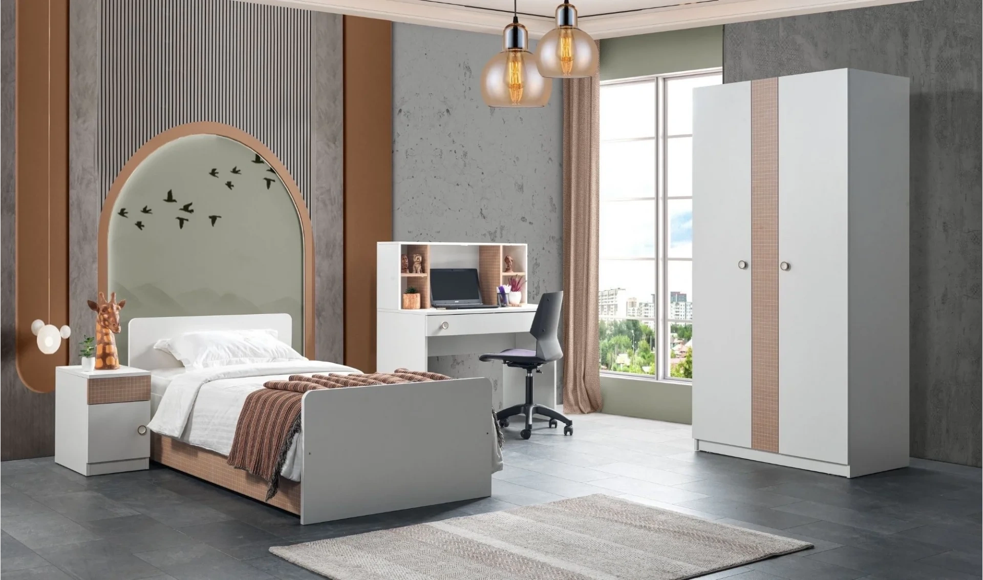 | Takım İçeriği | 3 Kapaklı dolap + Çalışma masası + karyola (90x190) + 1 ad. Komodin |