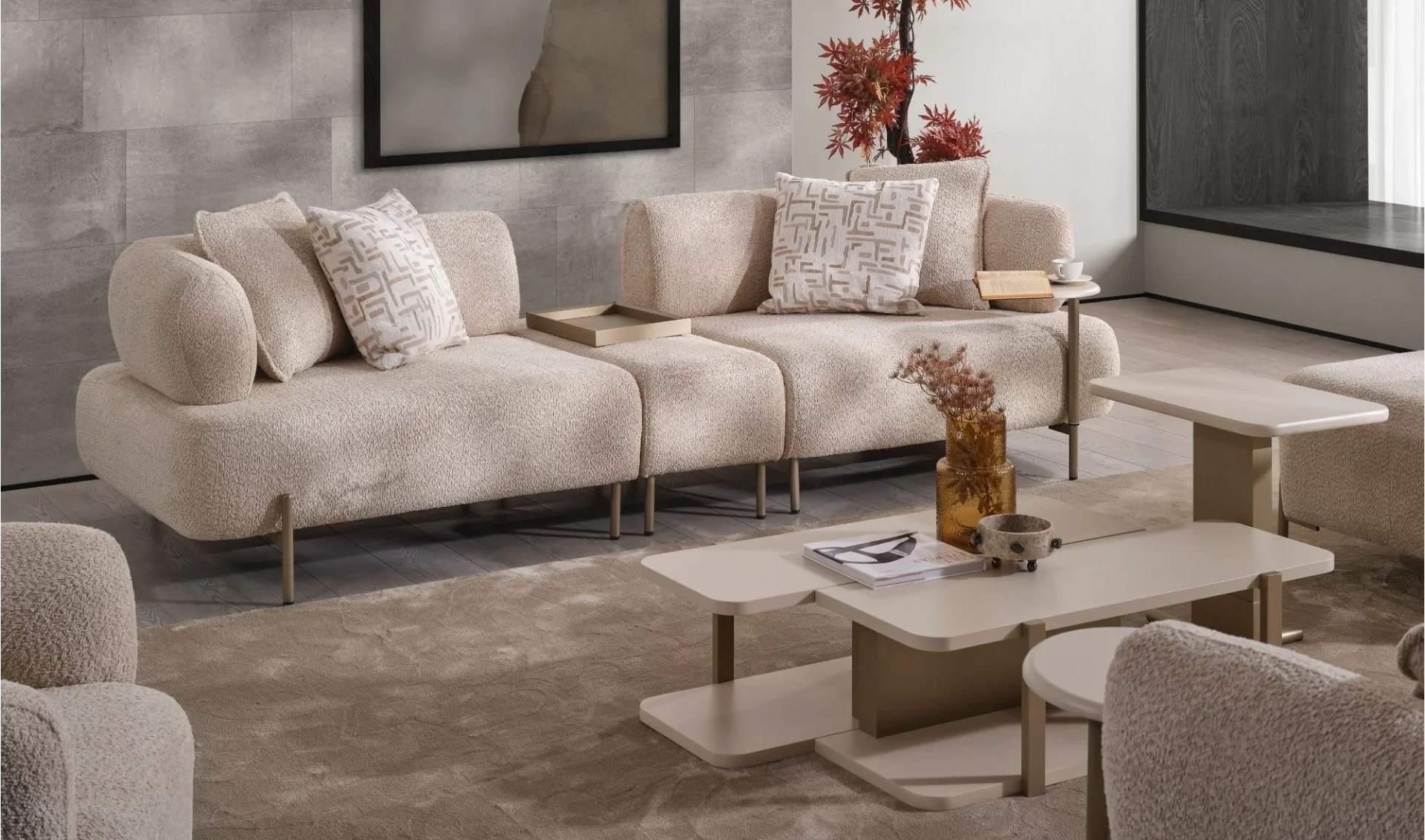 | Takım İçeriği | 1 ad. 3'lü Koltuk (sehpalı ara modüllü) + Sök-tak sehpa |