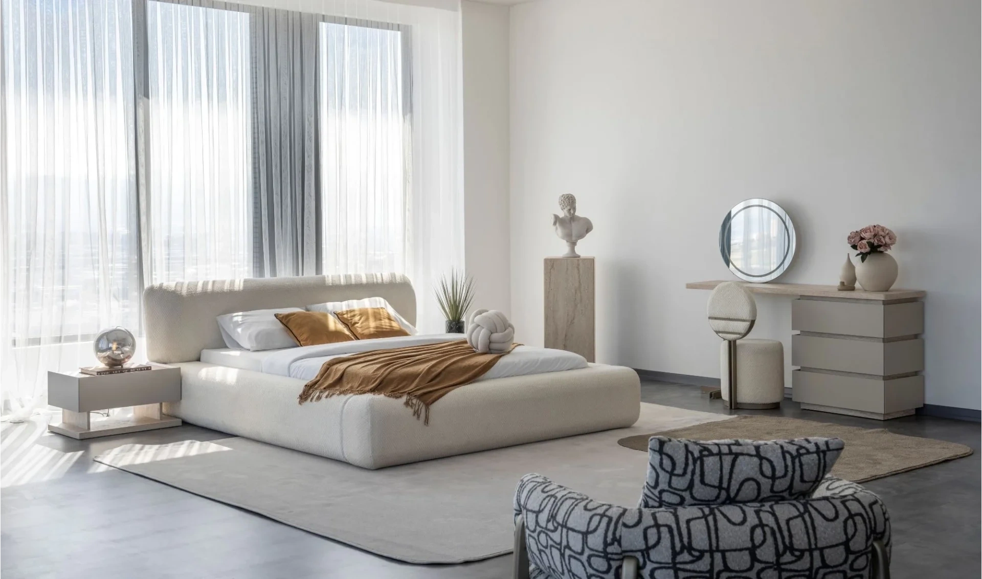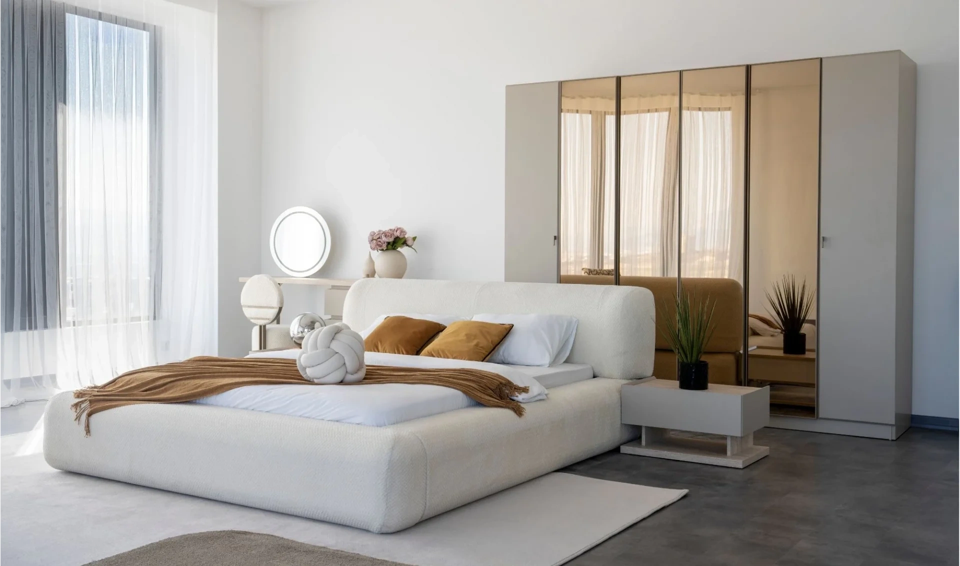 | Yatak Odası | 6 Kapaklı gardrop + Bazalı karyola (160x200) + 2 ad. Komodin + Şifonyer ve ayna |