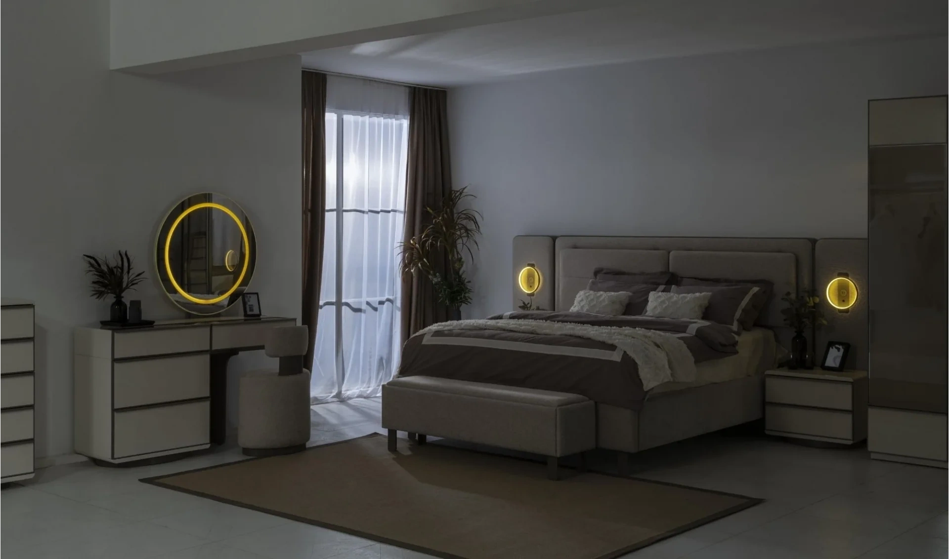 | Karyola | Bazalı (160x200 cm) , Bazalı (180x200 cm) , Bazasız (160x200 cm) , Bazasız (180x200 cm) , Bençli , Bençsiz |
