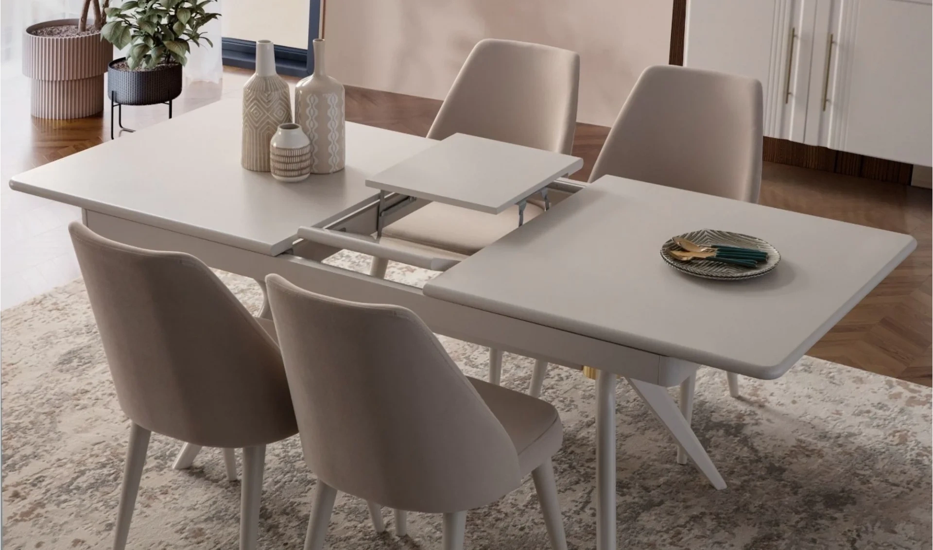 | Takım İçeriği | Yemek masası (açılır) + 6 ad. sandalye + Konsol ve ayna |