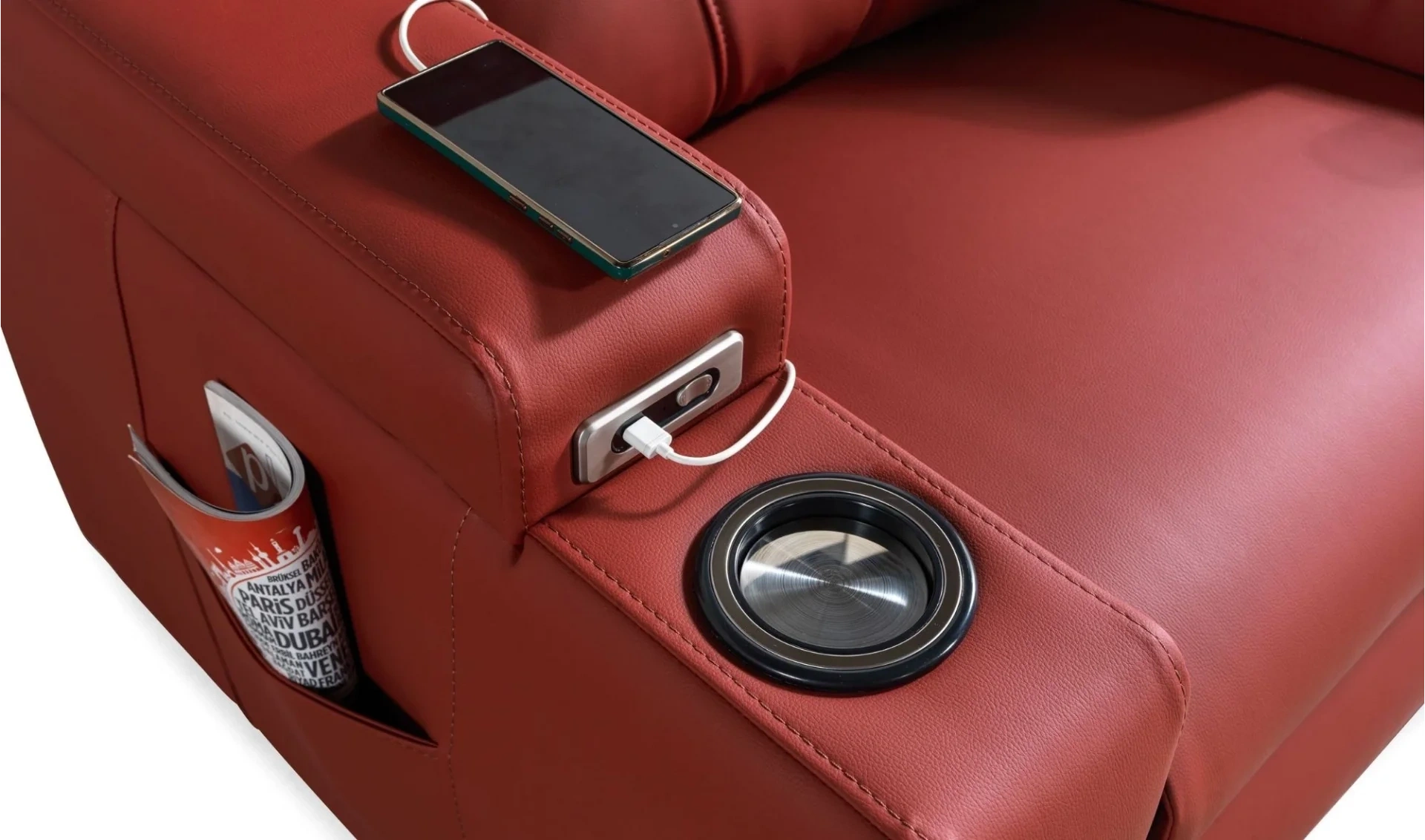 | Koltuk Özelliği | Butonlarla kontrol edilen Rose Plus modeli, 145 derece açıya kadar yatay pozisyona gelebilir; dilenilen açıda sabit bırakılabilir. Ayrıca, iki lüks bardak tutacağı ve bir USB girişine sahiptir |