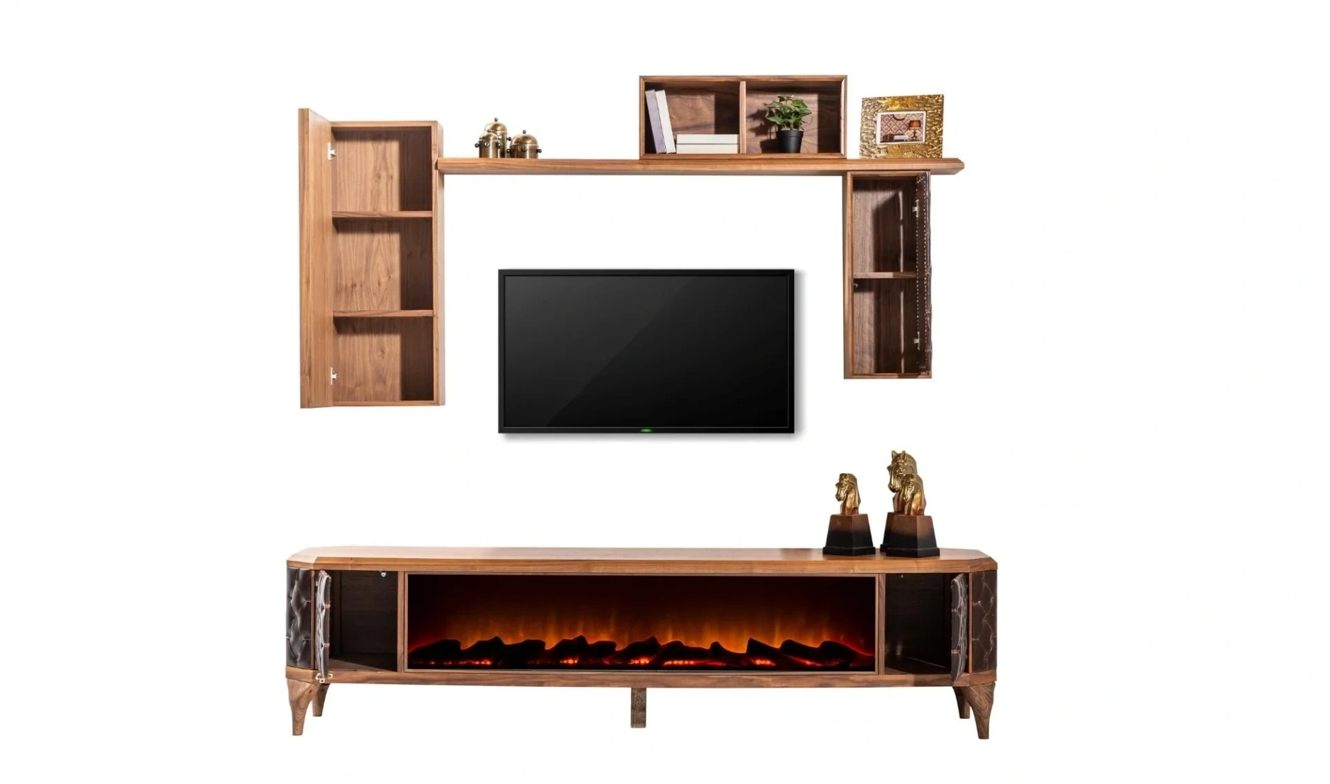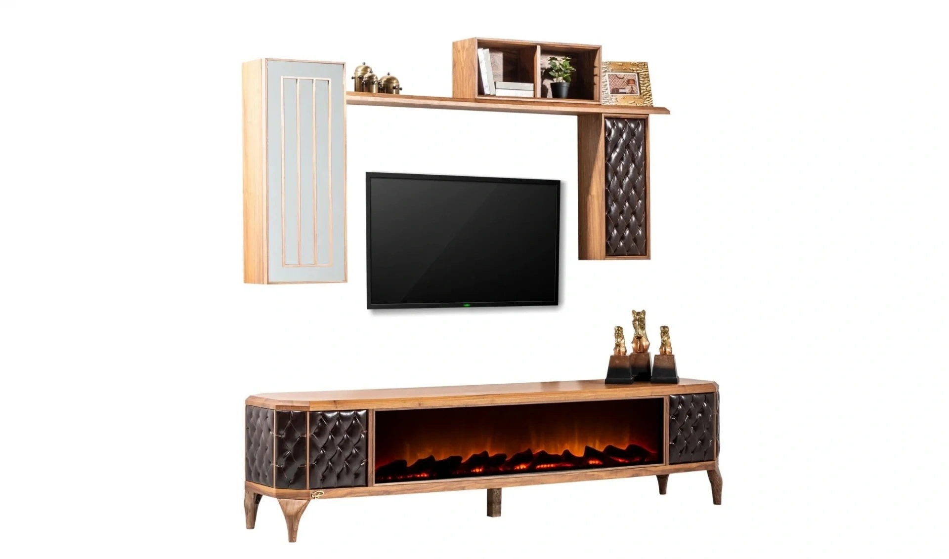 | Takım İçeriği | 1 ad. Tv ünitesi şömineli alt modül + 1 ad. Tv ünitesi döşemeli modül + 1 ad. Tv ünitesi düz raf + 1 ad. Tv ünitesi aynalı modül + 1 ad. Tv ünitesi kutu raf |