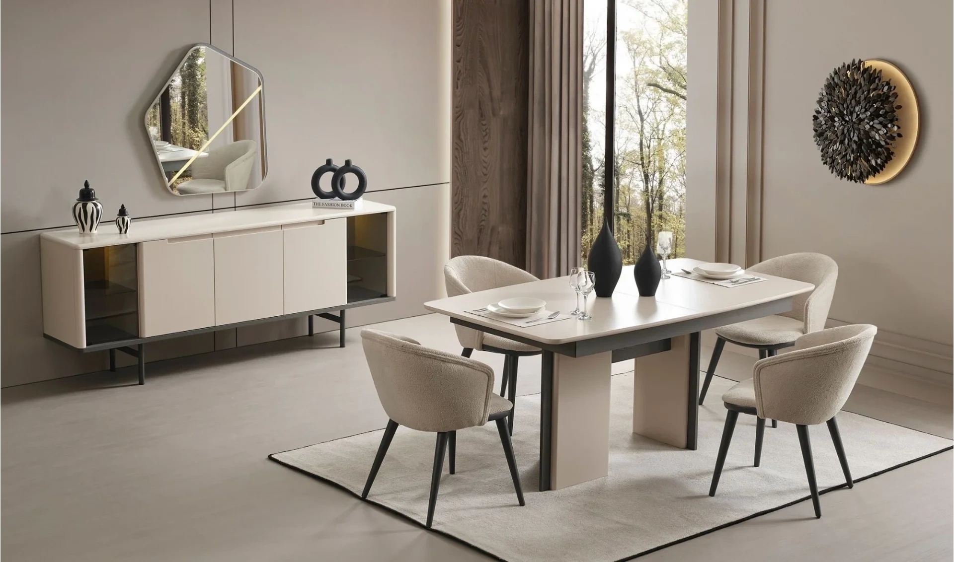 | Takım İçeriği | Yemek masası (açılır) + 6 ad. Sandalye + Konsol ve ayna |